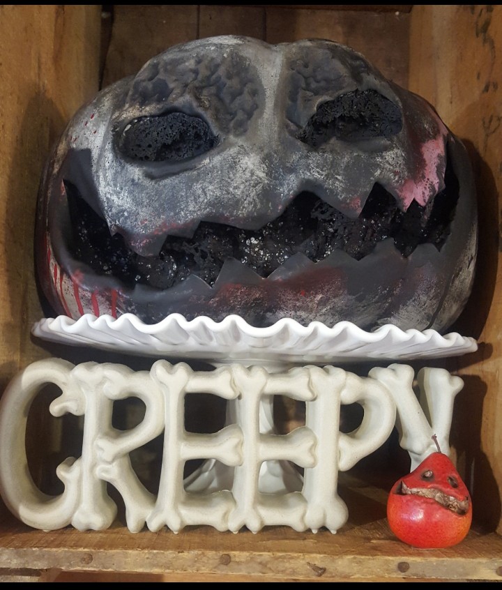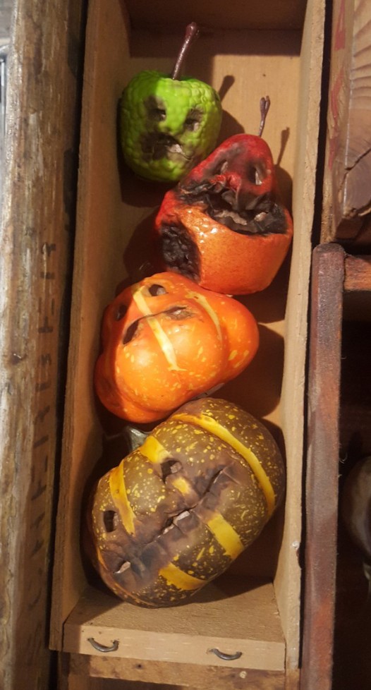 Sara May and Craig Bloch create creepy jack-o-lanterns out of various faux vegetables and fruit. They make great decorations for Halloween or for some anytime of the year. Fall is our favorite time of year and naturally all things spooky. We are very passionate about making creative and original pieces for others to love and have in their homes.