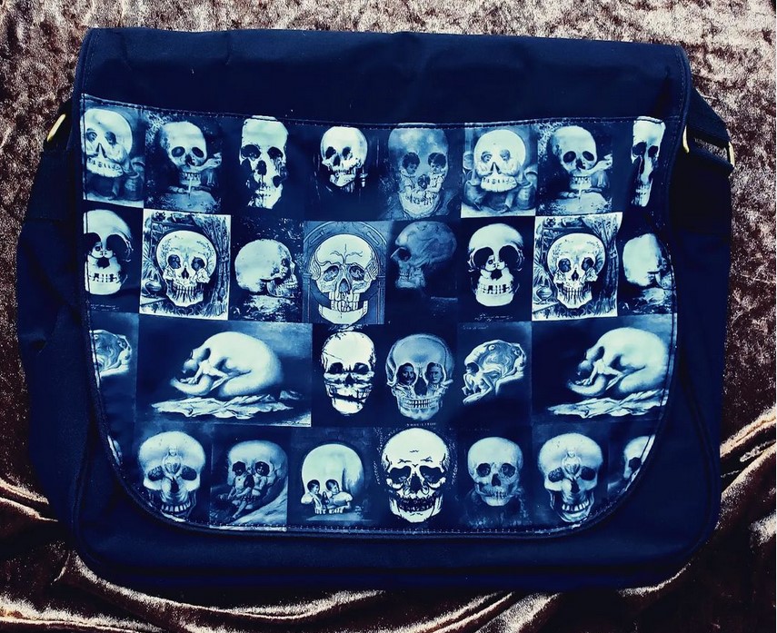 Memento Moira is an odd Midwesterner, prone to wandering secondhand shops and contemplating how things may be taken apart and made into other things. Rather obsessed with funeralia, abandoned objects and places, old books, quack medicines and poisons, and sundry oddities. I’m best known for the fabrics that I design utilizing vintage ephemera from my collection, which is then used to create dresses, bowling shirts, and bags. I also produce jewelry, accessories, 2D/3D art, and ornaments.
